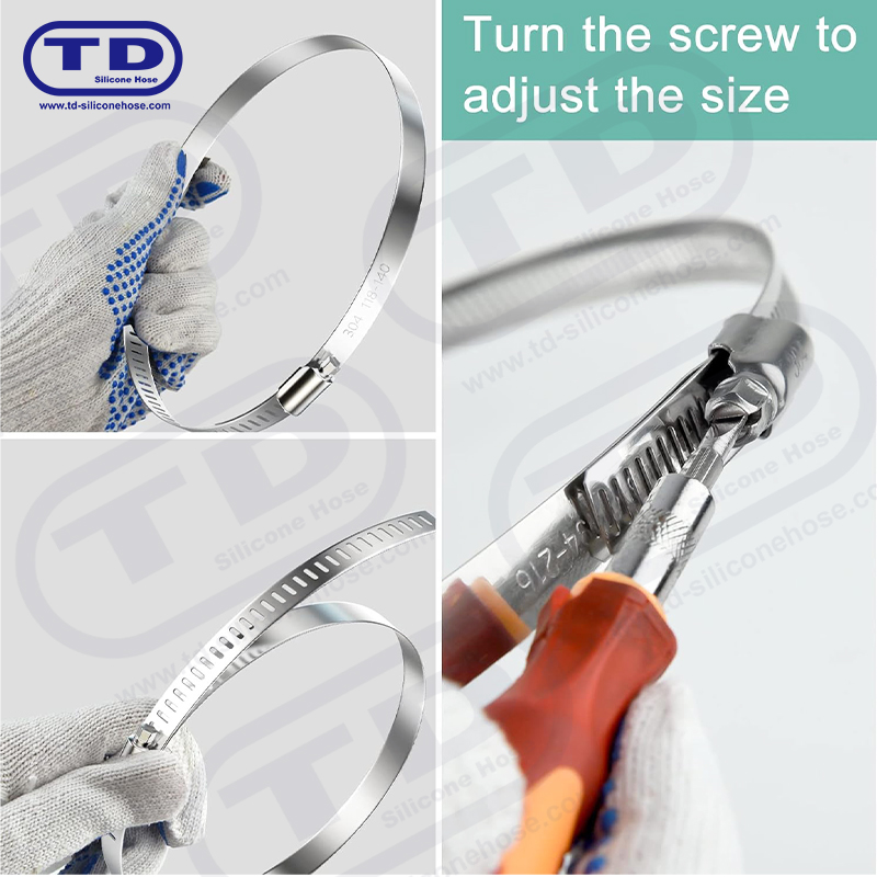 3. Designed na may mekanismo ng gear ng bulate, ang mga clamp ng hose ay madaling i -install at alisin nang hindi nangangailangan ng anumang dalubhasang mga tool. Ayusin lamang ang salansan sa nais na laki at higpitan gamit ang isang distornilyador o wrench.